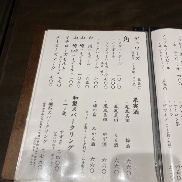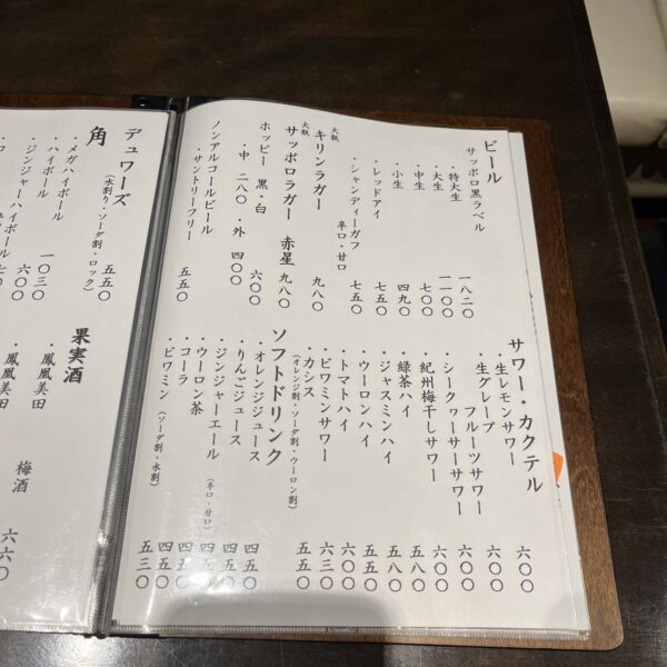 ドリンクメニュー