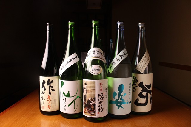 厳選日本酒 厳選日本酒 厳選の日本酒 当店の利き酒師厳選の豊富な地酒。 各地より厳選の日本酒は、常時入れ替えで、20種類以上ご用意しております。 メニューに合う地酒をスタッフがご提案致します。 厳選日本酒
